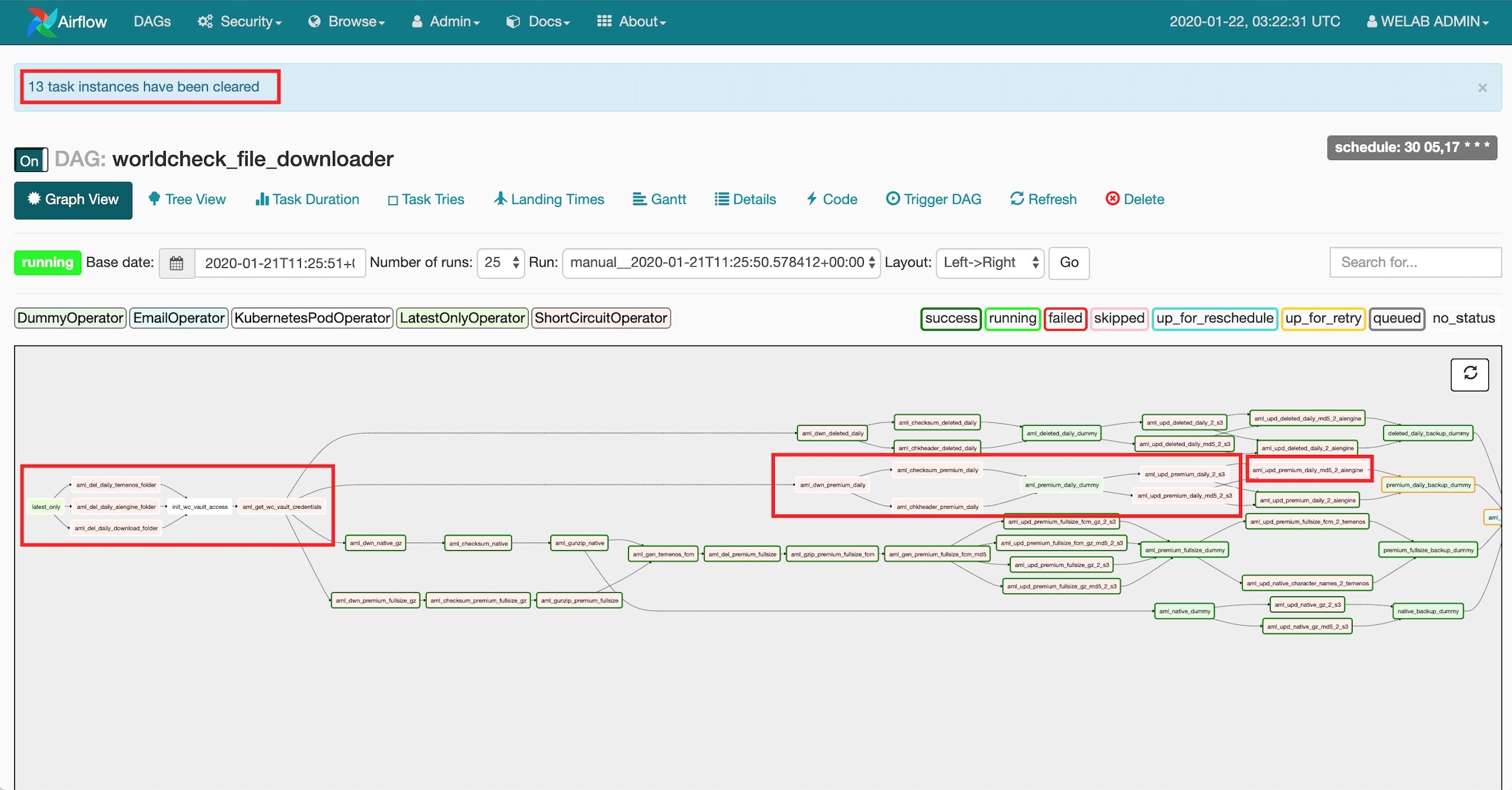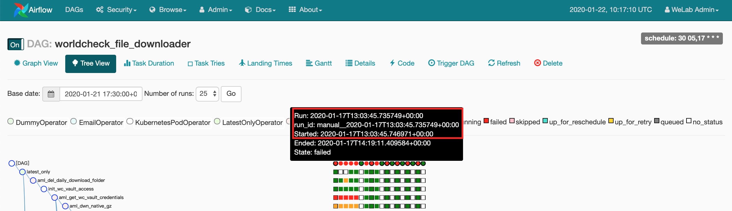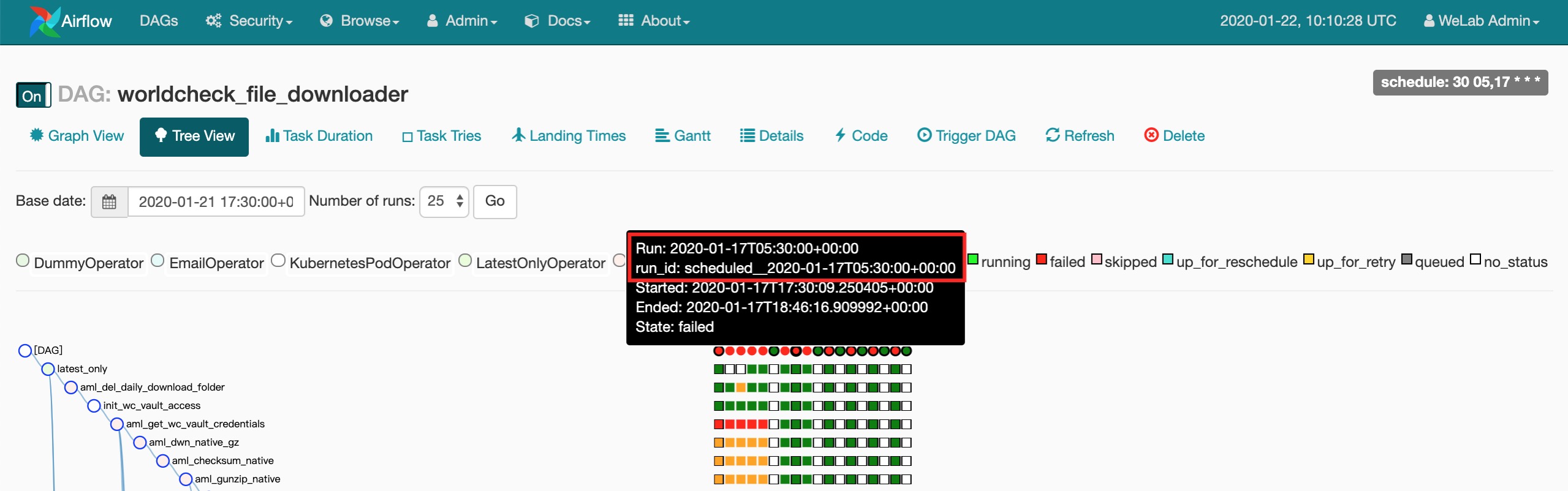 skipped状态是指该task被跳过不执行,在worldcheck_file_downloader这个DAG里没有出现;