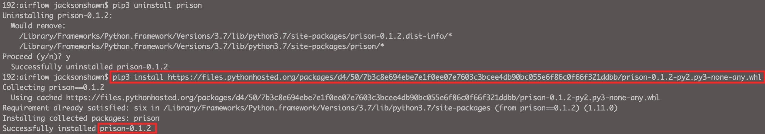 由于我本机也安装了apache-airflow,使用pip3 show prison,可以看到prison版本是0.1.2,并且它被Flask-AppBuilder包依赖。