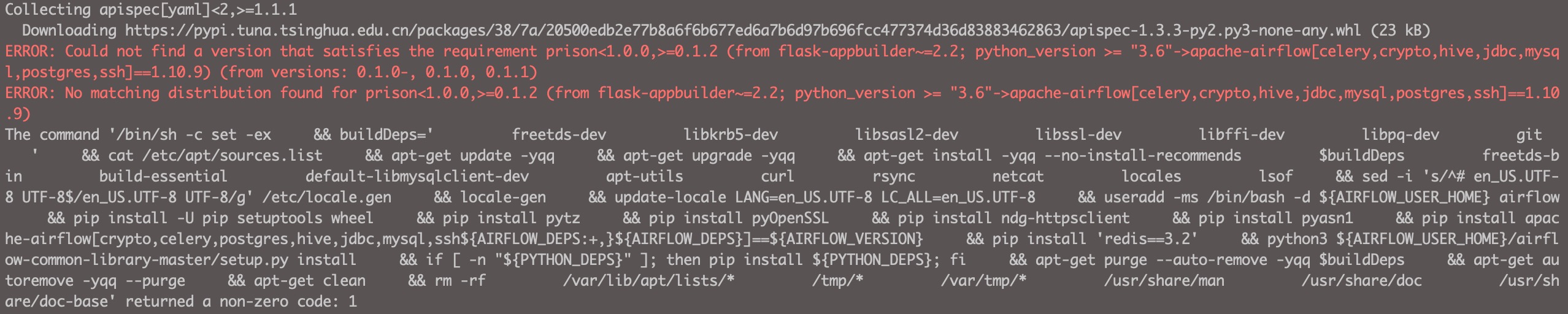 Docker build过程中,安装flask-appbuilder包时候由于它需要依赖prison包,但pip源里prison包的版本不对,因此报错,镜像打不成功。