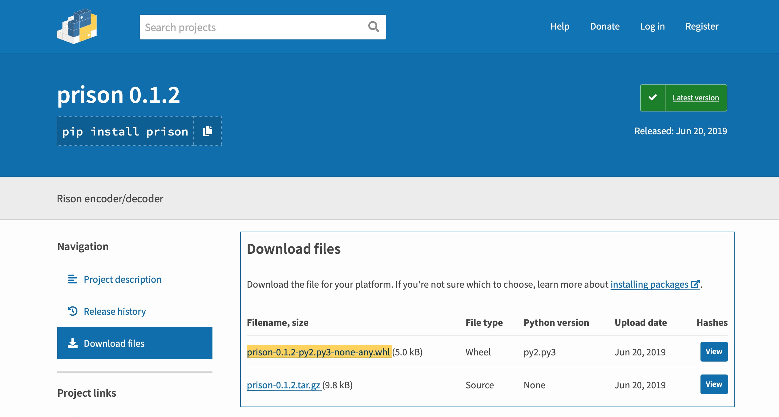 prison这个包,查看PyPI和GitHub页面,它的最新版本是0.1.2,如果是清华镜像源的问题,我们可以使用PyPI官网提供的.whl文件进行安装。