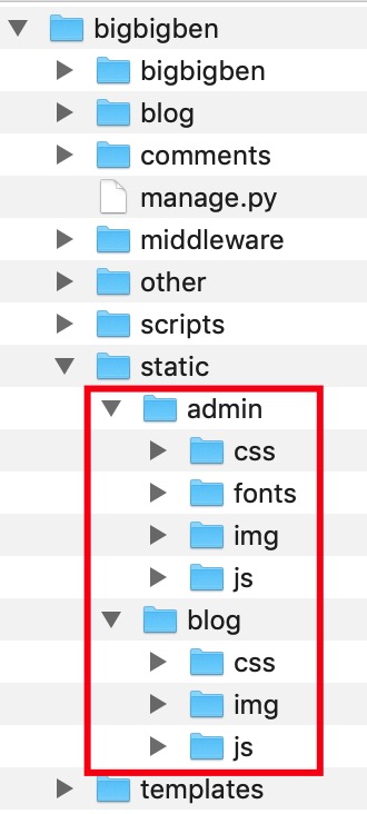 12345# Setup `STATIC_ROOT` to collect all static resources from every applicationsSTATIC_ROOT = os.path.join(BASE_DIR, 'blog/static')# Use `STATICFILES_DIRS` to store static resouces which are not used in applications, this can be not setSTATICFILES_DIRS = [os.path.join(BASE_DIR, '/static/')]